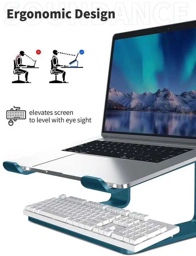 SOUNDANCE Laptop Stand, Aluminum Computer Riser, Ergonomic Laptops Elevator for Desk, Metal Holder Compatible with 10 to 15.6 Inches Notebook Computer, Navy Blue