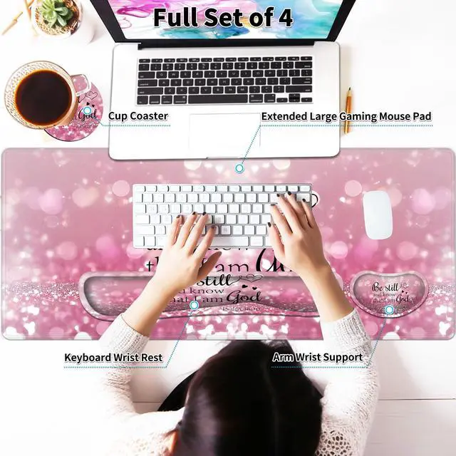 All-in-One Set: This 4-piece set includes a large gaming mouse pad, a keyboard wrist rest, a wrist support, and a coaster. With everything you need in one package, you can fully optimize your gaming setup for maximum comfort and performance ^^ Versatile and