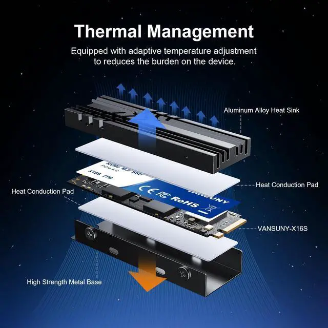 Built-In Cooling: The included heatsink prevents overheating during intense gaming marathons or heavy workloads. Keep your M. 2 SSD running cool and stable, even during 8K video rendering or gaming ^^