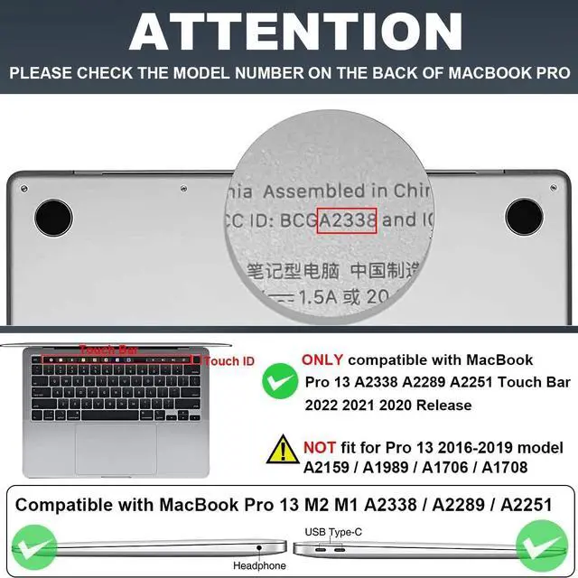 Designed ONLY fit for Newest MacBook Pro 13 inch with Retina Display and Touch Bar Fits Touch ID 2022 2021 2020