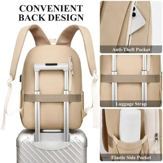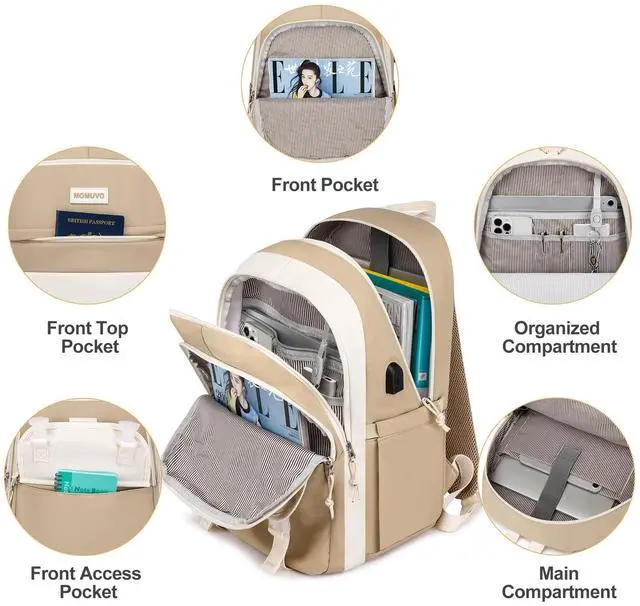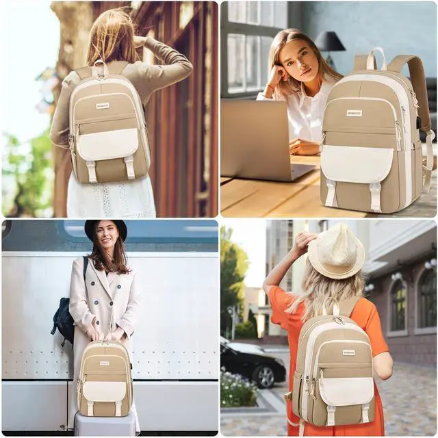 Multi-Compartment Design The backpack for school features 4 compartments: a padded laptop sleeve (fits 16.1" laptop & 12.9" iPad), a main compartment, and 2 front pockets. Plus, 2 side water bottle holders for easy access. ^^ Spacious & Lightweight This school backpack measures 11.8" x 7.5" x 17.7" with 25L capacity, weighing only 1.4 lbs. Includes a fluffy keychain gift for a stylish touch. ^^ Ergonomic & Secure The school bag features padded, adjustable S-shaped straps for comfort and a luggage strap for travel. Hidden anti-theft pocket keeps valuables safe. ^^ Durable & USB Charging Port The girls book bag is made of waterproof polyester fabric with sturdy zippers. Built-in USB charging port for on-the-go device charging. ^^ Versatile for School & Daily Use Stylish and functional, perfect for middle school girls, college, work, or travel. A must-have unisex school backpack for students and professionals.