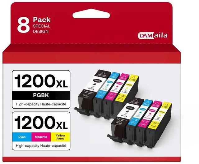 Packing List: total 8 pack of 1200xl ink cartridges (2 Black, 2 Cyan, 2 Magenta, 2 Yellow).