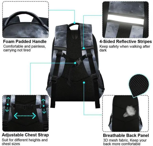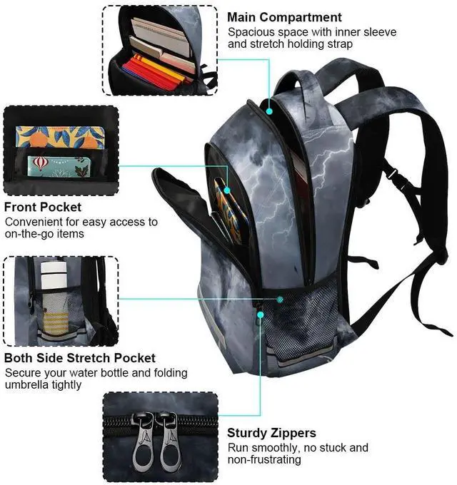 Durable Material100% polyester fiber 290 twill cloth ^^ Fashion School Backpack 11.6 x 6.9 x 16.7 in/ 29.5 x 17.5 x 42.5 cm, fit for laptop up to 12.9 inch, daily commute, student bookbag, laptop backpack and more ^^ Reflective Stripes DesignThe shoulder straps are designed with a reinforced thick back cushion, which increases breathability of the back and reduces the shoulder pressure, you can carry for a long time comfortably. Reflective strips are added to the front zipper pocket of the schoolbag, the back strap and the mesh pockets on both sides which have obvious reflective effect with protective function under the illumination of night light ^^ Ideal GiftGlaphy Casual Bookbag is a good choice to friends and children for birthday, Christmas/Xmas, New Year, Thanksgiving and other festivals.