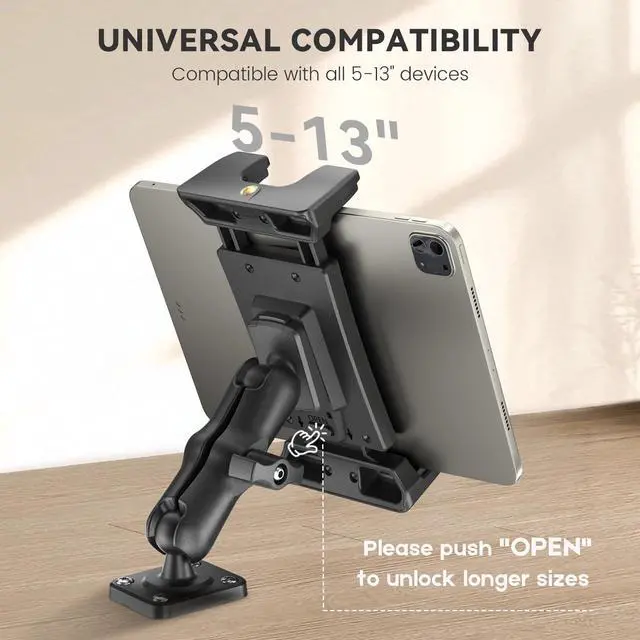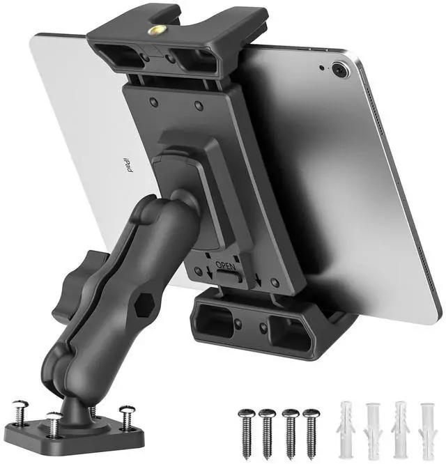 Car Dashboard: Heavy Duty Drill Base - Can be mounted on various cars, walls, desks or other smooth flat surfaces, allowing you to mount your tablet wherever you want. You need to prepare your own punching equipment for the installation of the tablet mount for car.