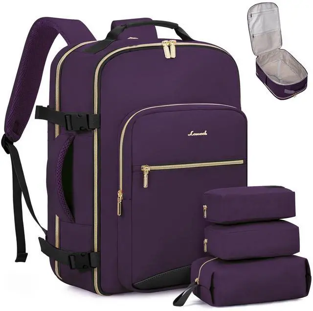 Packing Cubes and wet pockets: This waterproof backpack for women is equipped with additional 3 storage pockets, including 2 carry-on storage pockets and 1 shoe pocket. You can put underwear, socks, and small clothes neatly inside. The shoe bag is 16.5 inches/42cm long and can hold 1~2 pair of shoes. You can also put your toiletries and wet clothes inside the dry and wet separation bag made of high-density waterproof material to keep your travel organized.