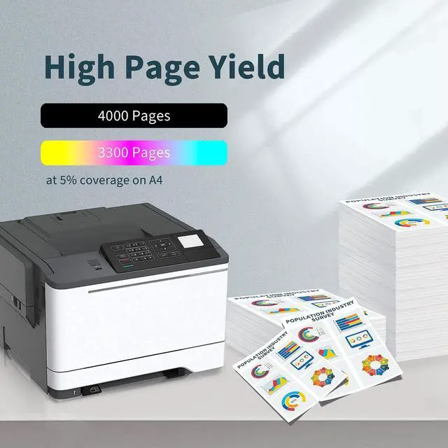 Page Yield: Up to 4, 000 Pages per 71B10K0 Toner, 3, 000 Pages per color Toner (70C1HC0 70C1HM0 70C1HY0) at 5% coverage of A4 Paper ^^