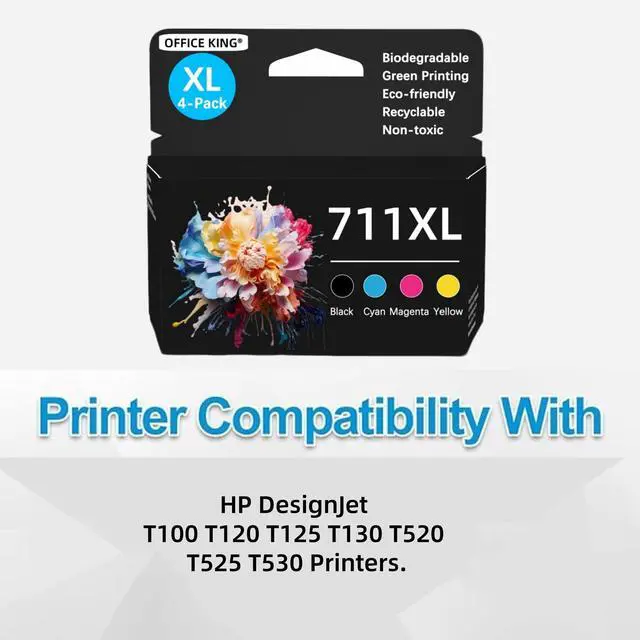 High Standard of CompatibilityThe 711XL 711 XL Ink Cartridges fully complies with OEM factory standards and can perfectly match printer models such as HP DesignJet T530, T525, T520, T130, T125, T120 & T100 Large Format Plotter Printers. If you have any doubts about its compatible models, welcome to contact us via email, and we will answer your questions as soon as possible.