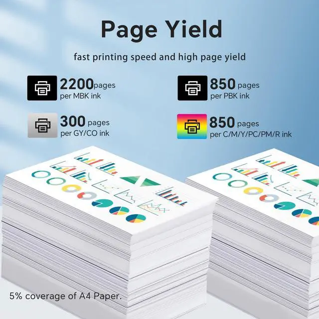 ^^ High Page Yield: Up to 2, 200 Pages per MBK PFI-300 ink cartridge, 850 Pages per PBK/C/M/Y/PC/PM/R PFI-300 ink cartridges, 300 Pages per GY/CO PFI-300 ink cartridges.