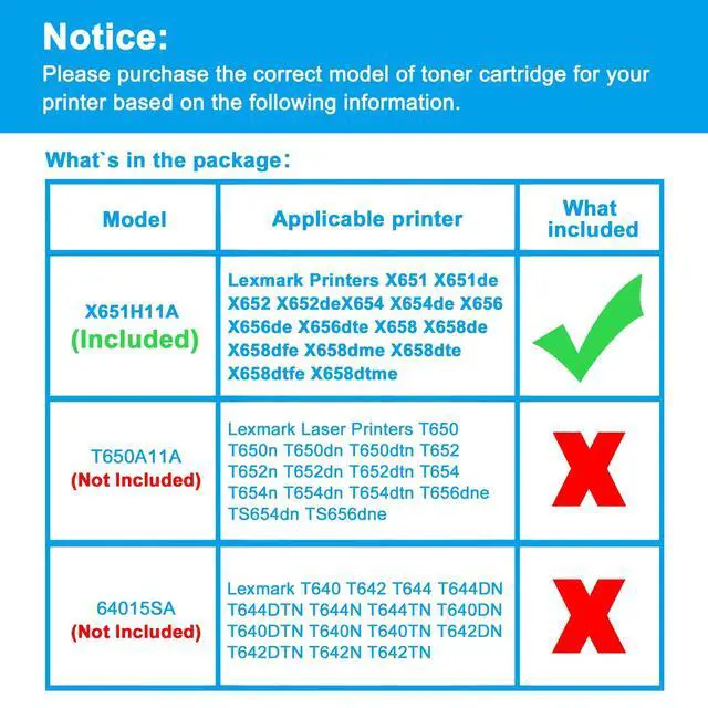 ^^ Compatible Printers: Replacement for Lexmark Printers X651 X651de X652 X652de X654 X654de X656 X656de X656dte X658 X658de X658dfe X658dme X658dte X658dtfe X658dtme ^^