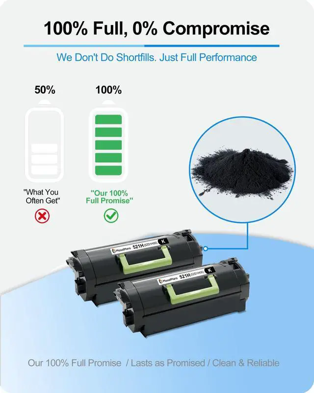 Model: 52D1H00 / 521H Toner Cartridge. Formulated with premium A-Grade toner, these black ink cartridges produce sharp, professional black-and-white prints with consistent monochrome accuracy. They are engineered for reliable performance that helps maintain your printers health and extends its lifespan.