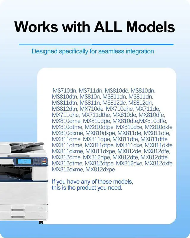 ^^ Compatible Printers: for Lexmark MS710dn, MS711dn, MS810de, MS810dn, MS810dtn, MS810n, MS811dn, MS811dn, MS811dtn, MS811n, MS812de, MS812dn, MS812dtn, MX710de, MX710dhe, MX711de, MX711dhe, MX711dthe, MX810de, MX810dfe, MX810dme, MX810dpe, MX810dte, MX810dtfe, MX810dtme, MX810dtpe, MX810dxe, MX810dxfe, MX810dxme, MX810dxpe, MX811de, MX811dfe, MX811dme, MX811dpe, MX811dte, MX811dtfe, MX811dtme, MX811dtpe, MX811dxe, MX811dxfe, MX811dxme, MX811dxpe, MX812de, MX812dfe, MX812dme, MX812dpe, MX812dte, MX812dtfe, MX812dtme, MX812dtpe, MX812dxe, MX812dxfe, MX812dxme, MX812dxpe printer ^^