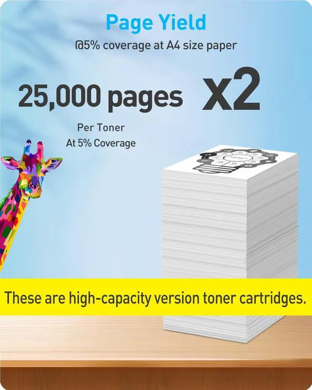 Page Yield: Delivers an impressive page yield of up to 25, 000 pages per cartridge, based on 5% coverage on A4 paper.