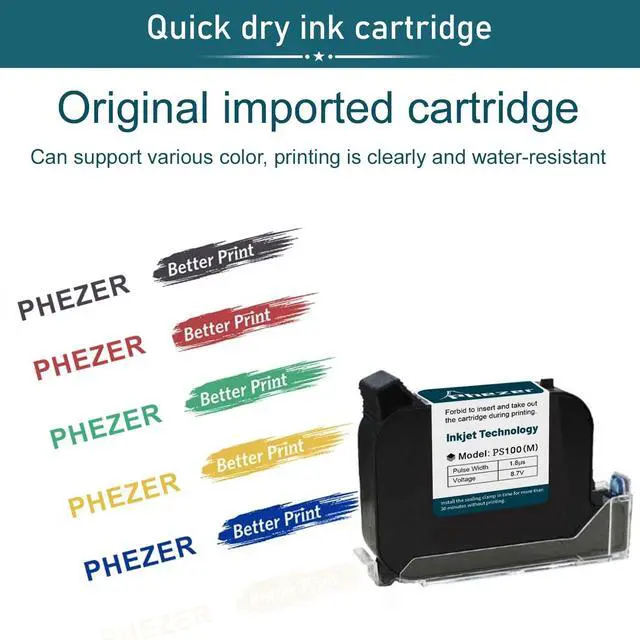 [Quick-Drying Ink Cartridge]: Phezer uses imported industrial-level of quality ink cartridges, achieving real quick drying on all printing surface. With the high quality nozzle, the printing is Smooth, Brightly and stable.