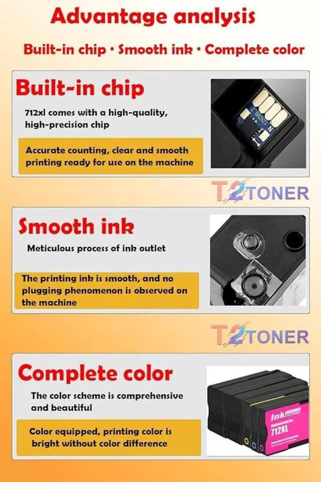 & 712xl colors: 29ml/pack ^^ Ultra print supplies, featuring new chip technology and then new toner, deliver sharp, clear fonts with precise outlining of character edges when printing text, and rich color reproduction when processing images.