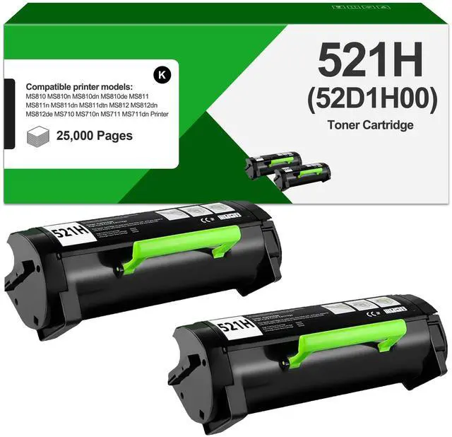 Package Contents521h toner cartridge cartridge replacement for lexmark 521h 52d1h00 toner cartridge (2pack. black) ^^ Compatible PrinterCompatible for Lexmark MS710 MS710dn MS710n MS711 MS711dn MS810 MS810de MS810dn MS810dtn MS810n MS811 MS811dn MS811dtn MS811n MS812 MS812de MS812dn MS812dtn Laser Printer ^^ High Page YieldUp to 25, 000 pages for each 521h toner cartridge (at 5% coverage of A4 paper) ^^ Perfect Print Performance Our 521H toner cartridge delivers clean, sharp and crisp printouts, resisting fading, smudging and blurring as well as bringing you dependable printouts. ^^ JMOMY Warranty ServiceFor any issues, our customer service team will resolve your concerns within 6 hours.