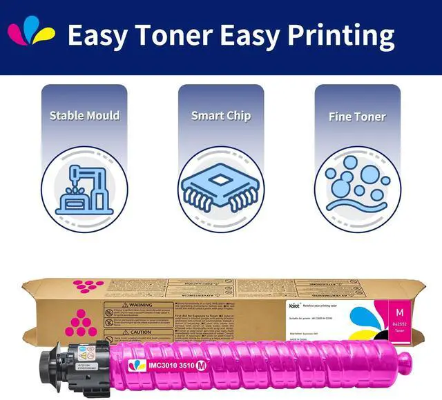 ^^ Reliable Quality: The IMC3010 cartridge uses high-quality toner with an optimized particle size for superior mobility and transfer efficiency. This results in sharp, high-gloss prints while maximizing page yield through high printing efficiency and low waste.