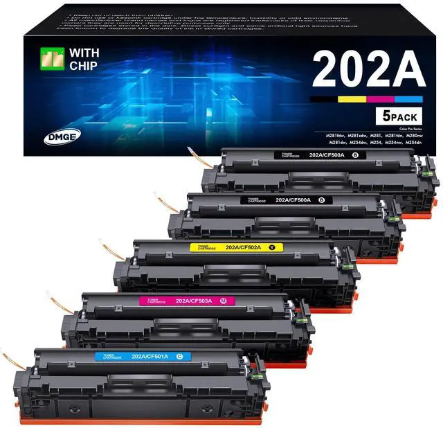 With Upgraded Chips: 202A toner cartridges for hp printer are equipped with chips for hassle-free printing experience. No need to remove and install old chips on this replacement for hp 202a toner cartridges 5 pack ^^