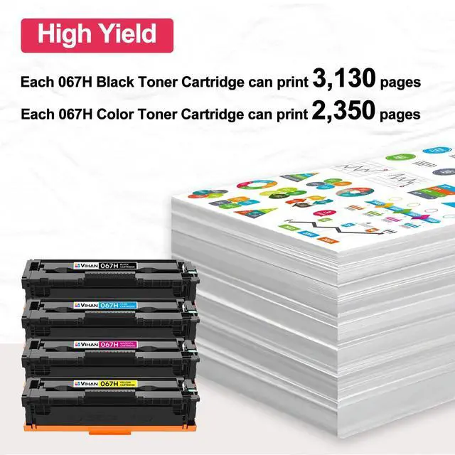 High page yield: 3, 130 Pages for 067 067H black toner cartridge and 2, 350 Pages for 067 067H color toner cartridge at 5% coverage ^^ Sharp without