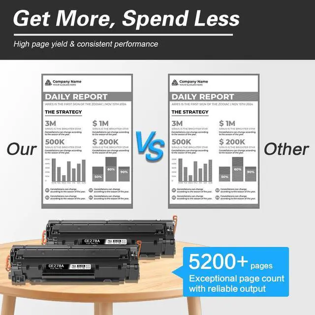Page Yield: 2, 600 Pages per 78A Black Ink cartridge at 5% coverageideal for offices, schools, and professionals with high-volume printing needs ^^ Delivers crisp black text and vibrant color output. Reports, presentations, invoices, and educational materials ^^ Each cartridge is easy to install and rigorously tested no leakage and smooth operation from the first print to the last