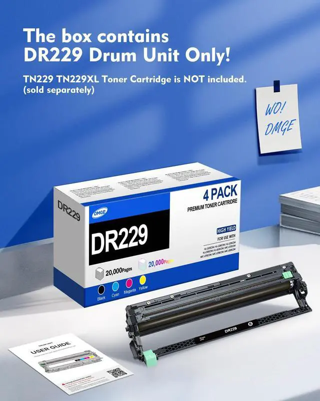IncludeDR229CL DR229 drum unit Multi-Color, Black, Cyan, Magenta, Yellow 4 Pack (No TN229 TN229XL TN229XXL toner cartridges) ^^ Compatible with Brother MFC-L3780CDW, MFC-L3720CDW, MFC-L3765CDW, MFC-L8395CDW ^^ Compatible with Brother HL-L3280CDW, HL-L3220CDW, HL-L3295CDW, HL-L3300CDW, HL-L8245CDW ^^