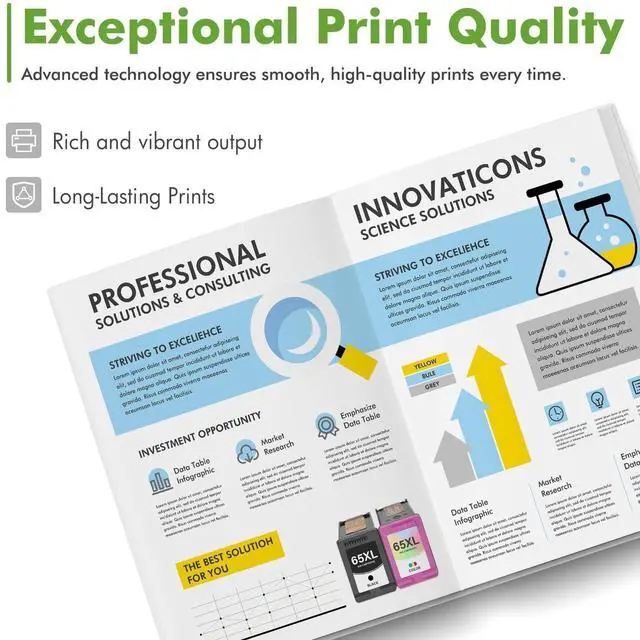 High Page Yield: Up to 750 pages for each 65xl black ink and 450 pages for each 65xl color ink (Letter/A4, at 5% coverage) ^^ Compatible for Officejet ENVY 5000