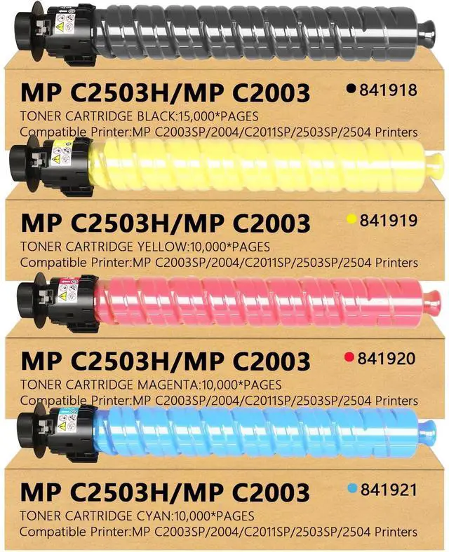 Packing List: 1x Black, 1x Cyan, 1x Magenta, 1x Yellow, 4-Pack MP C2503 / C2003 Toner Cartridges (841918 841921 841920 841919) ^^