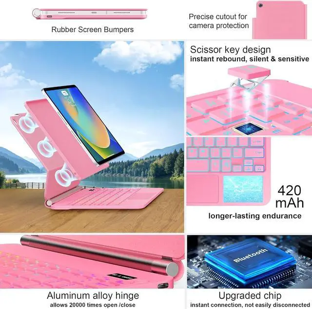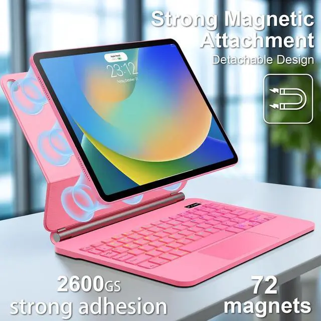 ALIWLHOF iPad 9th Generation Case with Keyboard,Magic Magnetic Keyboard Case for iPad 10.2 9th/8th/7th Gen & Air 3,Pro 10.5, Multi-Touch Trackpad - Backlit (Pink)