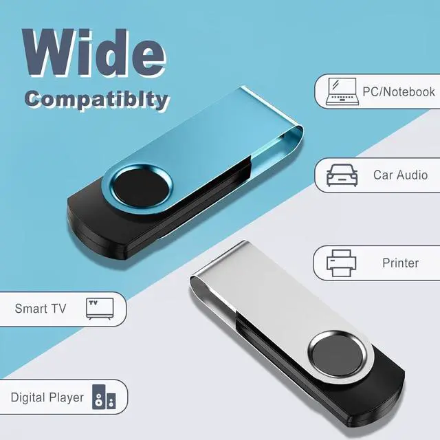 VERSATILE & HIGHLY COMPATIBLE: Keep your important files with you anywhere using this compact 4GB USB pen drive. TATMOHIK memory sticks feature 360 swivel aluminum covers to protect the USB connector, plus a convenient eyelet for attaching to keychains, backpacks, or lanyards. Easily store and transfer documents, images, videos, Excel, Word, or PDF files. Works seamlessly with computers, laptops, TVs, speakers, notebooks, and car audio systems, making it perfect for school, work, or travel
