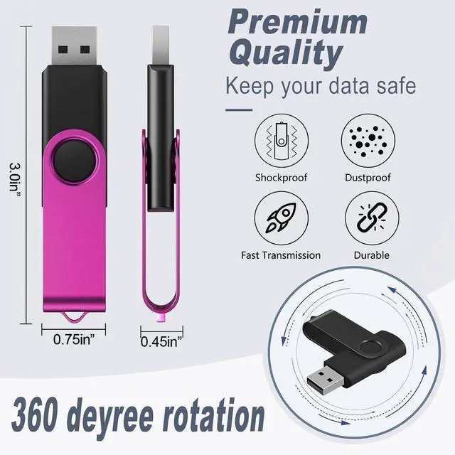 PLUG AND PLAYl: 4GB USB flash drives are lightweight and easy to use. USB 2.0 ensures fast read/write speed with no need to install a driver. Perfect for quick data storage and transfer. These memory sticks provides ample capacity for files, photos, and music. Each USB stick features a 360 swivel cover to protect the connector and an eyelet for attaching to keychains, backpacks, or lanyards. Take your data anywhere safely and easily. Compatible with computers, TVs, speakers, notebooks, and car ^^ HIGH COST-EFFECTIVE USB Thumb Drives 20-Pack 4GB: USB 2.0 flash drives in multiple vibrant colors, perfect for storing, sharing, and transferring files quickly. Comes with a label sheet to mark each USB drive for work, personal, or backup data, making organization simple. These usb flash drive bulk have wide applications in schools, colleges, universities, commercial, government, media industries, engineering, healthcare, construction, CPA, attorney, photography, etc ^^ COLORED ALUMINUM COVER WITH MATTE TEXTURE: The 4GB USB jump drive 20 pack gets a premium look and feel under light reflection on the frosted cover while the aluminium cover provies the 4GB USB stick with protection from shocking, making it an ideal gift for clients, exhibitions, giveaway promotions, business partners, weddings, students, teachers, photographers, family members, etc ^^