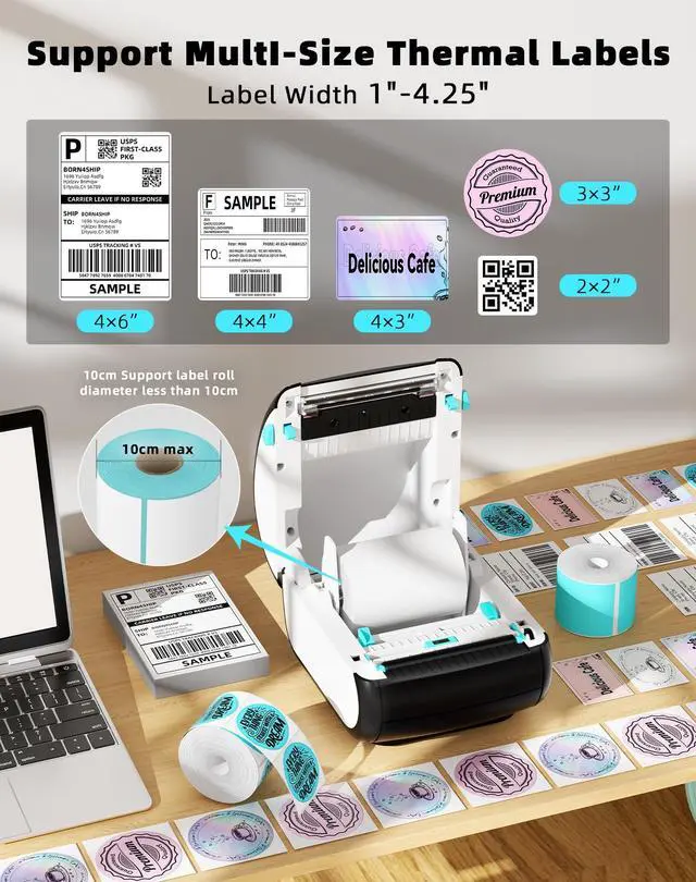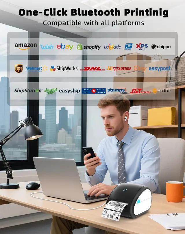 ^^ Support Versatile platforms: This 4x6 shipping label printer are almost compatible with all platforms, including major platforms such as, eBay, Shopify, USPS, UPS, Esty, PayPal, Poshmark, etc. Using this 4x6 thermal printer to print shipping labels, warehouse labels, market labels can help improve work efficiency. It is an ideal choice for small businesses to transport packages ^^