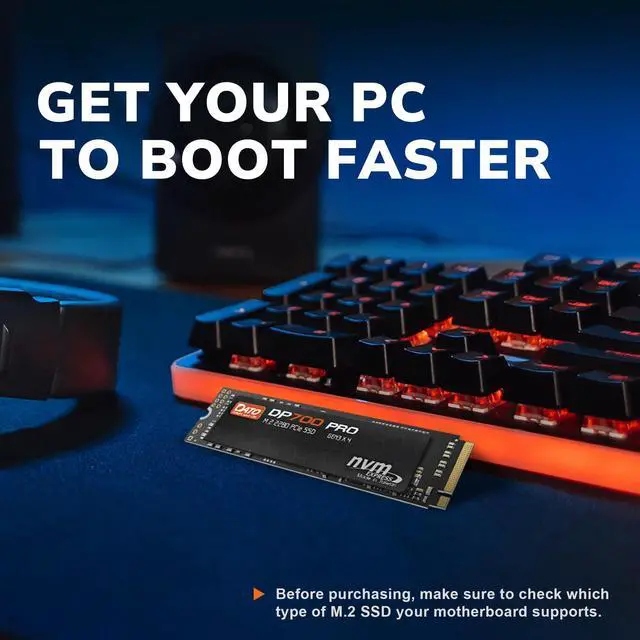 NVMe PCIe Gen3x4 High Speed Interface-High performance of read/write speeds up to 3300/3100MB, reducing delays and improving responsiveness. ^^ Fits laptop, desktop, notebooks, tablets and other devices compatible with PCIe 3.0 M. 2 2280 SSDs. ^^ Runs quietly on low power consumption without being any slower, minimizing stutters and providing the smooth user experience. ^^ Deeply valuing your user experience and having faith in our quality, we offer a limited 5 year guarantee for our DP700Pro SSD series. ^^ If you're not sure if it's compatible with your device, please slide in a message for compatibility consultation.