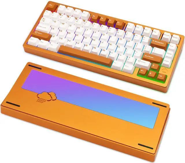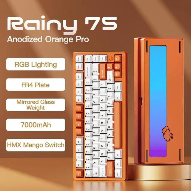KEEBMONKEY WOBKEY Rainy 75 Aluminum HMX/JWK Switches Mechanical Keyboard with Superior Acoustics, Wired, BT, 2.4G Wireless Connectivity (Pro Orange(Mirrored Glass Weight))