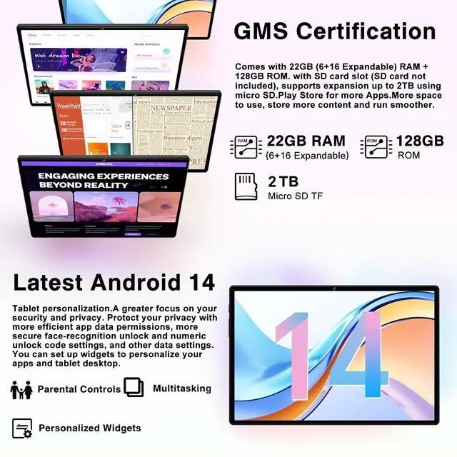 LARGE MEMORY STORAGE: Equipped with 22GB of RAM and 128GB internal storage, plus support for up to 2TB of expandable memory, this tablet offers ample space for all your apps, media, and files without sacrificing speed or performance ^^