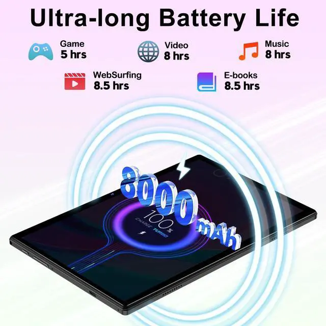 LONG-LASTING BATTERY: With an 8000mAh battery, enjoy all-day usage for streaming, browsing, or gaming. The tablet is GMS certified, giving you access to Goo-gle services and ensuring a secure and reliable user experience every time ^^