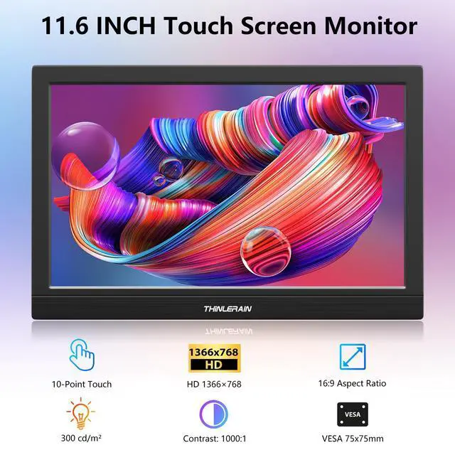 Touchscreen Portable Monitor: Get precise 10-point capacitive touch on Wstirhy 11.6 -inch portable monitor touchscreen via a single, fully-featured USB-C interface.