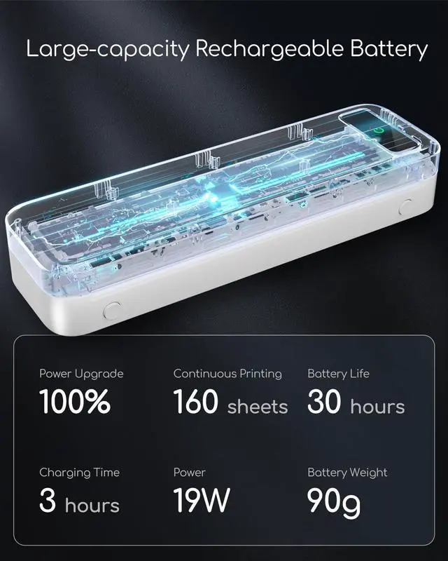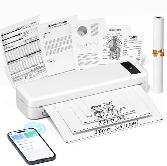 & Space-saving]: Portable printer built-in high-capacity rechargeable battery, print 160 sheets of 8.5 '' x 11'' thermal paper per charge. Weighs only 1.5 lb and is small in size. This inkless portable printer fits easily into a backpack or briefcase! Ideal for on-the-go printing during business travel, in car or truck, small office, construction site, school and home use. You can print documents, contracts, invoices, receipts and boarding passes anytime, anywhere ^^ Inkless Printer [Cost-Effective