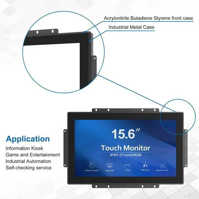 ^^ Robust Industrial-Grade Design: Built to withstand tough conditions, this open-frame touch screen monitor features a durable design thats perfect for industrial use. The sturdy black frame ensures reliable performance in harsh environments.