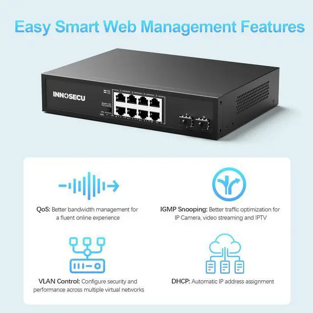 Easy Smart Management: Easy smart managed setup with easy-to-use interface offers basic managed capabilities to configure, supports Vlan, QoS data priority, DHCP, and IGMP Snooping ^^