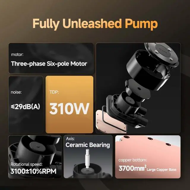 Ultra-Narrow Bezel ScreenOcypus Sigma Pro series CPU liquid cooler features 3.5 -inch ultra-narrow bezel IPS screen with 640480 resolution, perfectly showcasing your customised themes. ^^ Brand-New Floating DesignBrand-new floating ARGB lighting design features ARGB halo encircling the pump head. When displaying on screen, you can set your preferred lighting to complement the presentation. ^^ Fully Unleashed PumpThis is an exceptionally efficient water cooling system! The pump features ceramic bearing, enabling running speed up to 3100 RPM. Combined with oversized copper base for thermal conductivity, the TDP can up to 310W.