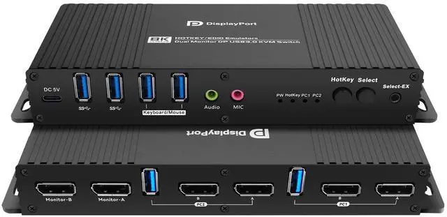 COMPATABILITY: the Kvm switch 2 monitors 2 computers Display port 4k 240hz supports most major operation systems like Windows, Linux, Mac and more; also support switch between devices without keyboard and mouse like DVR and NVR; Support webcam, speaker / headphone and microphone; ^^