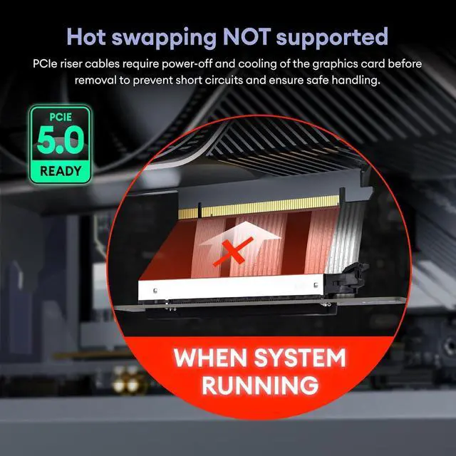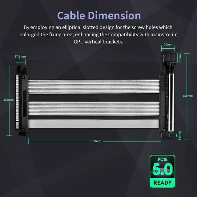 Gen 3 riser cable: This Graphics Card Extension Cable enabling vertical GPU display to showcase your hardware without sacrificing Gen 5 performance. Improves air circulation, prolongs GPU lifespan, and accommodates a wide range of GPUs. Ideal for users seeking better aesthetics and efficient cooling