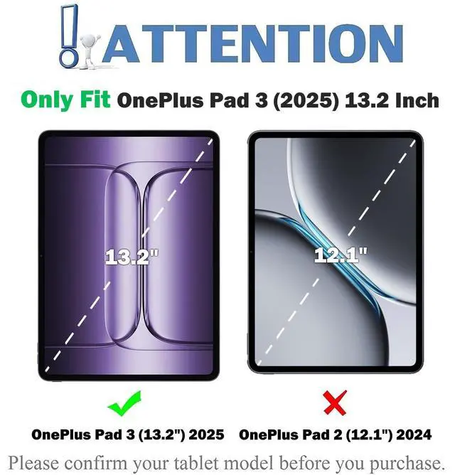 Compatible ModelsPerfect Compatibility: This case is compatible with 13.2 Inch OnePlus Pad 3 tablet 2025 Release. It will NOT work for any other model device. ^^ Precise Hole Position, Honeycomb DesignThe mold case is made based on the real tablet, and the precise cutouts can make full use of all functions, and provide perfect protection and convenience for daily use. The soft TPU inner shell adopts a honeycomb design, which is beneficial to the heat dissipation of the tablet and improves the performance of the tablet. ^^ Rainbow BacklightSuitable for 13.2 INCH OnePlus Pad 3 RGB rainbow backlight keyboard, 7 adjustable backlight colors, breathing light backlight mode can be automatically switched. The backlit keyboard can be used in the dark, providing a comfortable typing experience. ^^ Touchpad Keyboard + Multi TouchThe keyboard has a trackpad that supports multi-finger gesture functions. A single finger can slide to move the cursor, click to select a target, etc. Use two fingers to slide to switch pages, open/reduce images, etc. Use three fingers to slide down to take a screenshot, slide up to return to the main interface, etc ^^ Turn Your Tablet into A LaptopKeyboard can support Android, iOS Systems, Windows Systems.