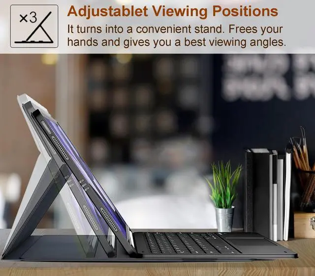 Real hard laptop style keyboard with high end ABS material. Not cheap silicone keyboard as other cases in market. A spring mechanism underneath each key ensures a tactile response with every stroke, helping you to type faster and with less error than on a touchscreen.