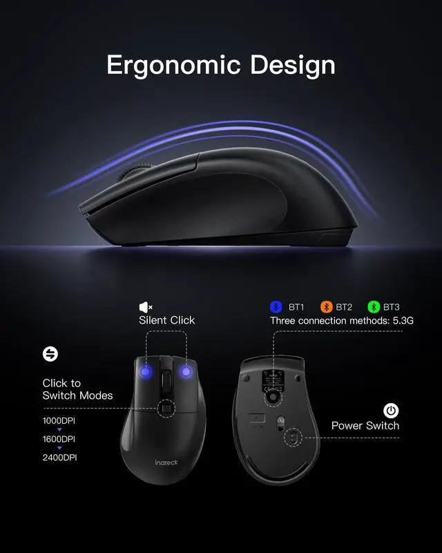 Wireless Freedom: Features 3-level adjustable DPI levels (1000/1600/2400) offer smooth cursor control for both work and gaming. Enjoy a stable wireless connection with up to 33 feet of range for unrestricted movement ^^