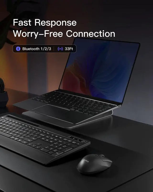 Wireless Connections: The keyboard and mouse set supports dual Bluetooth and 2.4 GHz USB wireless connections for easy pairing with various devices. Enjoy fast connections and seamless switching between your laptop, desktop, or tablet.