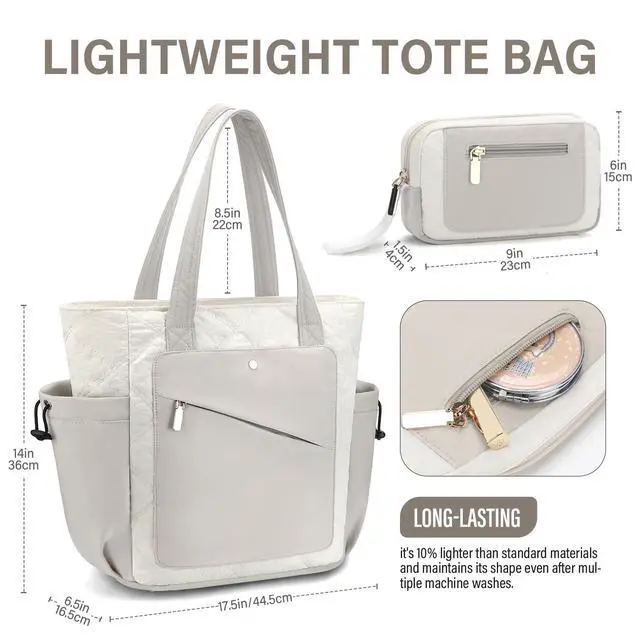 Elegant Design: The work bags for women with dimensions of 17 x 14 x 6.2 inches, this work tote bags for women provide large capacity without the bulk. The travel tote bags for women come with multiple internal and external pockets keep your laptop, books, water bottle, and other travel essentials neatly organized.