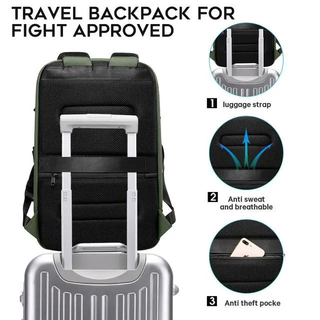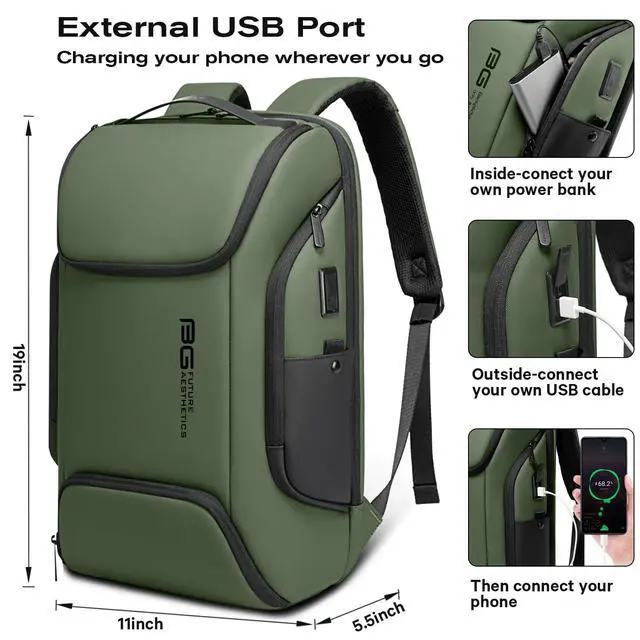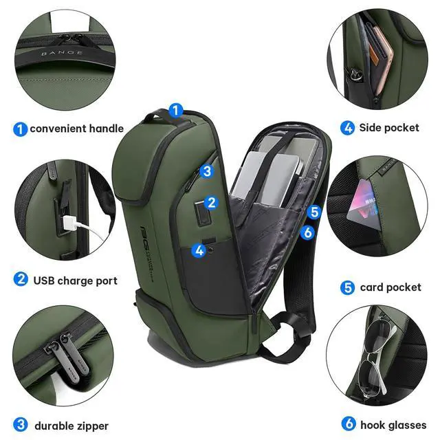 Human design: laptop backpack have USB charging port system you need self-provided power bank, It allows you to make electronic devices more convenient to charge, so that you don't need anything to charge outdoors. Multi-function shoulder straps with card pocket you can easily take your credit card, and have glasses hang hook, so that free your hands and on need to put the glasses into any pocket, you can hang the glasses on the shoulder strap, luggage strap let you be convenient of your travel ^^