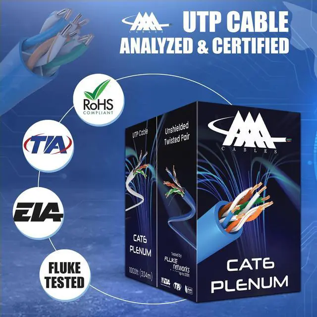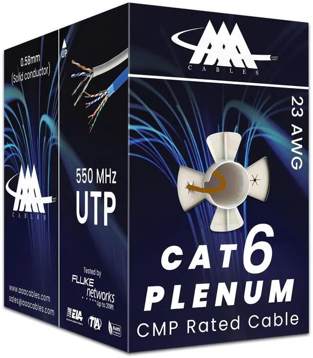 Cat6 Plenum Cable: Fluke Test Passed certification for unmatched reliability Plenum-rated jacket for enhanced safety in plenum spaces 23 AWG construction and 550 MHz bandwidth for lightning-fast performance Unshielded Twisted Pair (UTP) design for interference-free connectivity Future-proof and backward compatible with Cat5 and Cat5e standards Upgrade to Cat6 Plenum Cable Today and Experience Unrivaled Network Performance!