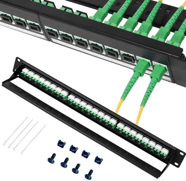 Maximize 100G Transmission in 1UPack 24 SC duplex ports into a space-saving 1U design. Ideal for high-speed 100Gbps APC Single-Mode fiber networks, scaling data centers, server rooms, and enterprise systems with low latency. ^^ Durable & Organized for Enterprise UseHeavy-duty steel construction with rear support bar withstands rigorous use. Bend radius protection and clear labeling simplify cable management and future upgrades. ^^ Optimized for Reliable Singlemode FiberEngineered for peak performance with APC SC fiber and APC connectors. Ensures low insertion loss and stable transmission for cloud, VoIP, and HD video applications.