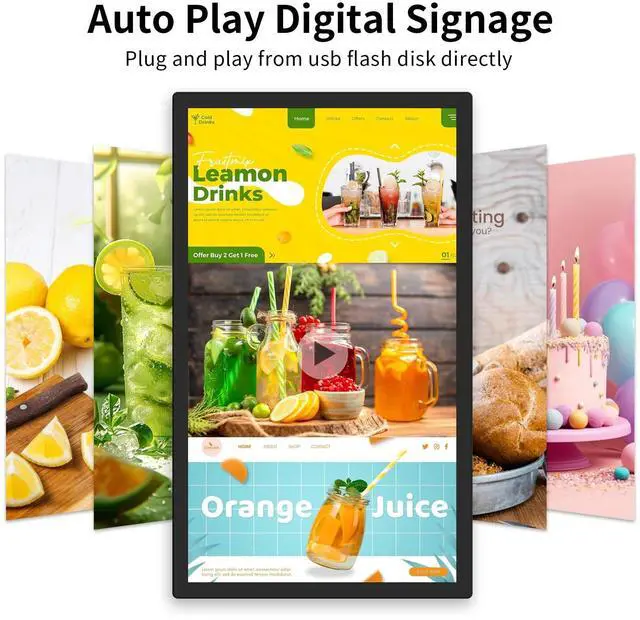 Ports: 1 x RJ45 100/1000M, 1 x HDMI-IN, 2 X USB-A, 1 x MicroSD cart slot, 1 x DC. All in One touch screen monitor with built in Automatic playback and timing app and support wireless screen mirroring ^^ Interactive Digital Display Built in 10000 mAh battery supports up to 4~6 hours of use, 10 Points Multi-touch screen capacitive touch screen can achieve a more effective human-tablet pc interactive function ^^ Multi Senario ApplicationCommercial advertising display perfect for public spaces, museums, sporting arenas, shopping malls, supermarkets, bars, jewelry counters, companies, exhibitions, cinemas, hotels churches, academic buildings, retail stores, corporate spaces and restaurants to offer wayfinding, messaging, marketing and outdoor advertising ^^ Professional Factory As a professional manufacturer with over 20 years of experience, specializing in OEM/ODM of big brands, we are committed to providing high-quality interactive touchscreen, panel, digital display, available 24/7 to assist you with any queries or concerns We provide a one-year warranty to give you worry-free after-sales service